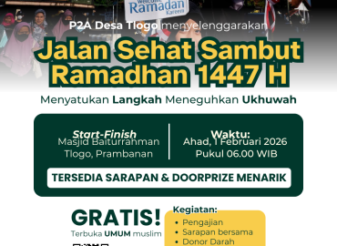 P2A Desa Tlogo mengajak seluruh masyarakat muslim untuk menyambut bulan suci Ramadhan dengan kegiatan Jalan Sehat yang penuh kebersamaan dan […]