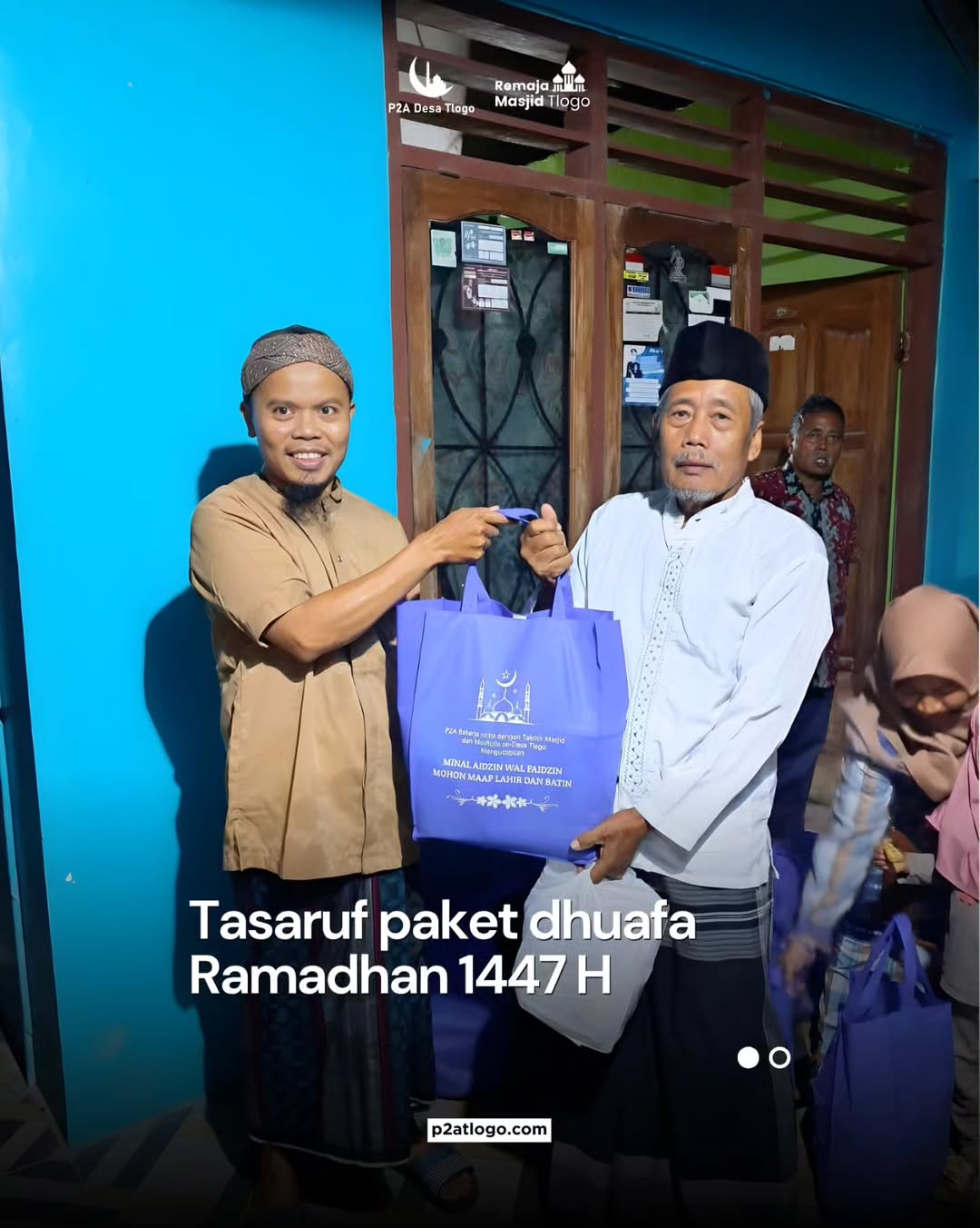 Dalam rangka menyambut Idulfitri 1447 H, P2A Desa Tlogo telah dilaksanakan kegiatan penyaluran bingkisan lebaran bagi dhuafa yang dihimpun dari jamaah masjid dan musjhola di Desa Tlogo. Program ini merupakan bentuk kepedulian sosial serta upaya memperkuat solidaritas masyarakat dalam berbagi kebahagiaan di momentum hari raya.